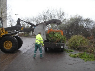 Am Samstag, den 14. November 2009 fand der 2. Schreddertag des Umweltbeirates der Stadt Hardegsen und der bvl - biomasse-verwertung-leinetal gmbH im ehemaligen Zementwerk in Lutterhausen statt. Bereits um kurz vor 9 Uhr standen die ersten mit vollgepackten Anhängern vor der Schranke. In den nächsten 3 Stunden wurde dann mehr als 70 mal Baum- und Strauchschnitt aus privaten Gärten angeliefert - im Kofferraum, mit PKW-Anhänger oder Trecker und Wagen. Kurt Scheibner und Hans-Jürgen Scholz vom Umweltbeirat sowie zwei Mitarbeiter der bvl halfen beim Abladen und fegten anschlieáend die Anhänger. Ein Anlieferer stellte erfreut fest: Das hat mir ja niemand verraten, dass Sie auch noch beim Abladen helfen. Und wenn es mal noch zügiger gehen sollte, wurde der Pickup auch mit dem Radlader abgeladen. Dabei waren sich alle einig: Wenn wir dieses nasse Material verbrannt hätten, hätte das ziemlich viel Qualm gegeben. Ein Anlieferer meinte sogar, wenn die Stadt bei ihrer Umfrage im Sommer den Schreddertag als Alternative zum Brenntag angeboten hätte, hätte er ja auch für den Schreddertag stimmen können. Jetzt wird das Material in den nächsten Tagen von der bvl geschreddert, abgesiebt und die größeren Holzstücke zu Hackschnitzel für die Heizung verarbeitet während das Feinmaterial kompostiert wird. Ulrike Berghahn